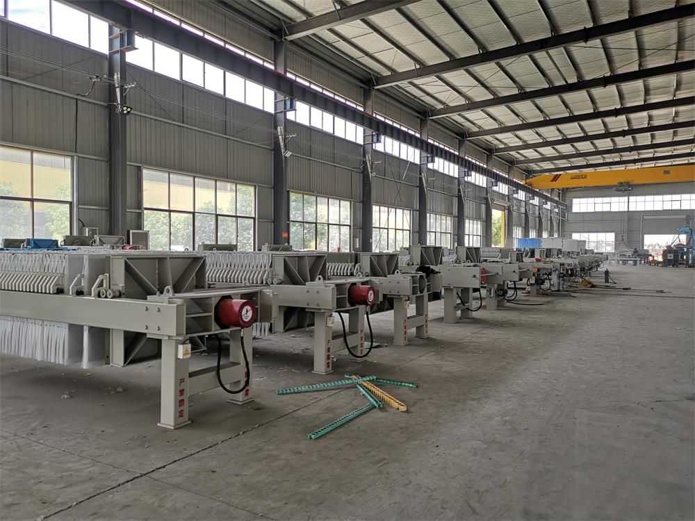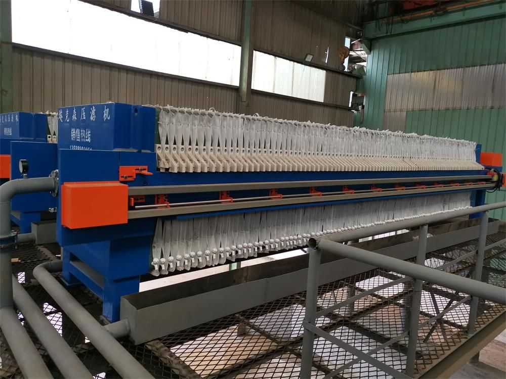 隔膜壓濾機和常規(guī)箱式壓濾機的主要區別在于,在濾板的兩側都增加了兩個彈性膜(復合橡膠膜是一個整體式膜。在操作期間,當進料完成時,將高壓流體介質注入膜中,并使整個膜膨脹以過濾濾餅,以進一步使濾餅脫水,這是壓力過濾。在隔膜壓濾機運行期間,液壓系統使用液壓油作為壓力載體來傳遞內部壓力。